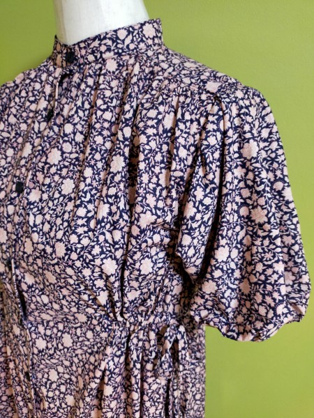| ミセスのスタイルブック2023 初夏号より。掲載は少しテロンとしたローズピンク無地の生地でした。生地が違うと印象が全く変わりますね。 スタンドカラーやヨーク仕立て、ギャザーなどもありなかなか難しかったなあ。 でもYouTubeなどで作り方も調べたらなんとかできました。  |