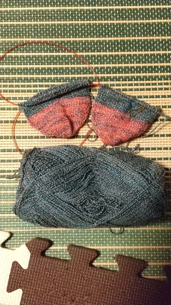 踵フラップに斜め模様を入れようかどうしようか考え中(^.^)