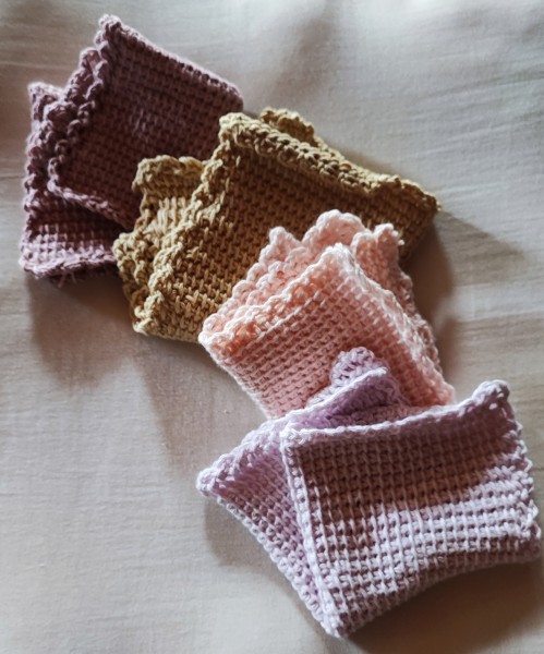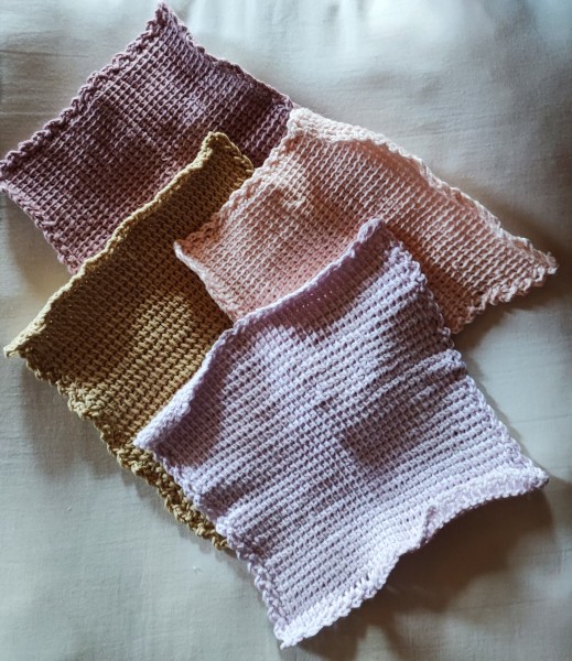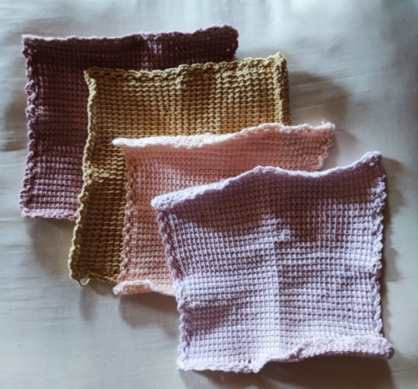 | アフガン編みでコットンのミニタオル。 アフガン編みがとても楽しくなり、余り糸の在庫整理を兼ねて編み続けてます。 6月30日~7月13日の期間に4枚編みました。約3日で1枚仕上がるペースでした。 UVコットンがお気に入りです。 肌触りが良くて触れてると癒されます。 |