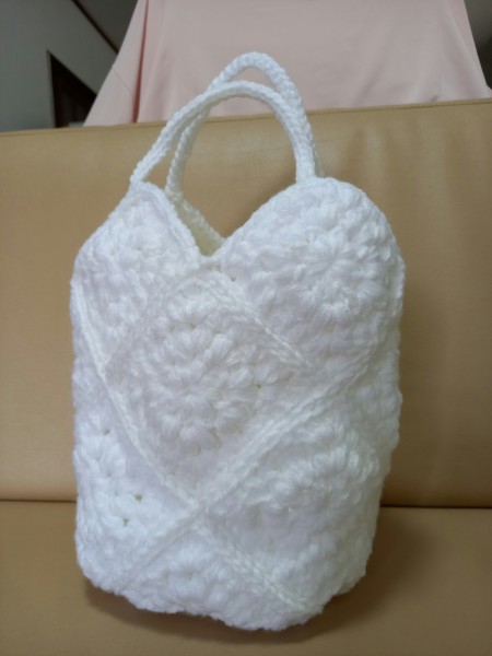 素敵にハンドメイドで紹介された「白いモチーフ編みでトートバッグ」を編んでみました。