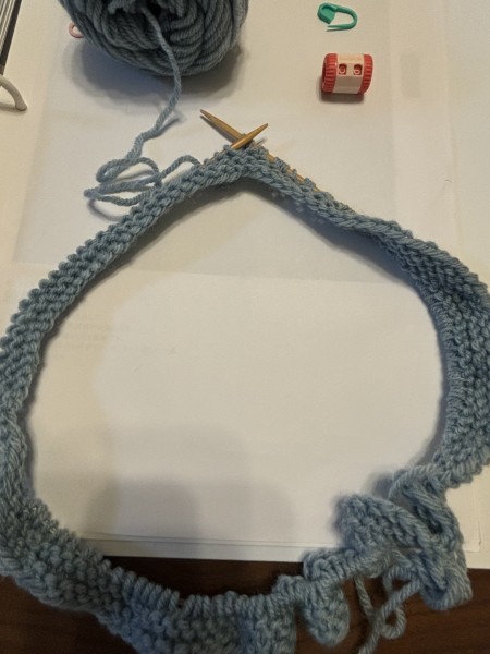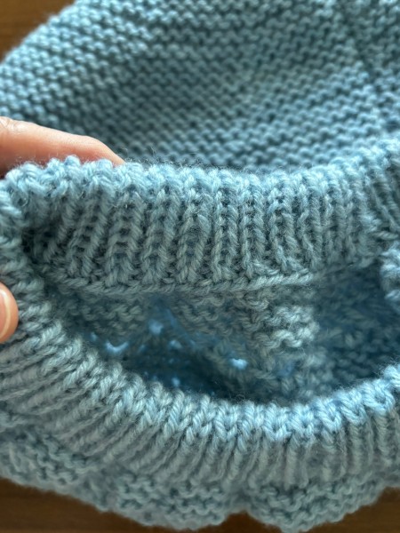 指でかける作り目をして、先にトップに向かって模様編みを編みます。こんな複雑な模様編みは編んだ事ないので…編み方合ってるのかなぁとちょっと気になりますが。