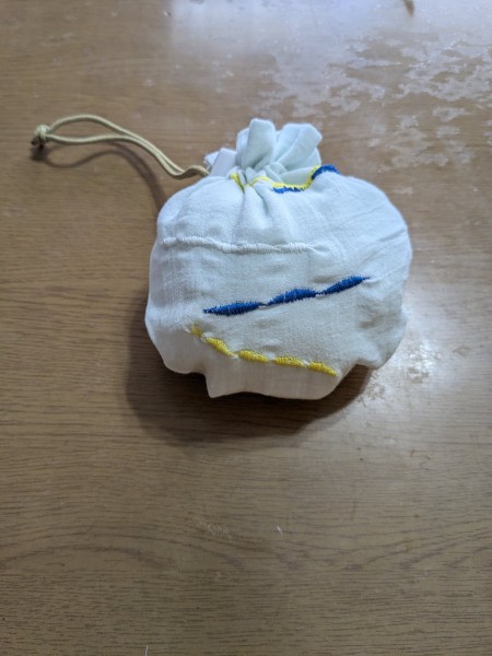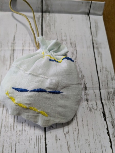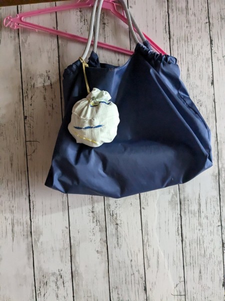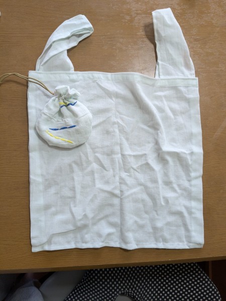 | 以前作ったバッグがシンプルだったのでエコバッグをチャーム代わりに作りました。 夏らしくヨーヨーをイメージした収納袋にエコバッグを入れるようにしました。 写真だと白っぽいですが 薄いシャーベットグリーンのような色の生地に白、黄色、青のステッチを入れています。 生地が薄いからでしょうか?少しステッチのところがつってしまいました。別の素材で再挑戦してみます。 |