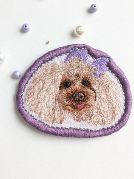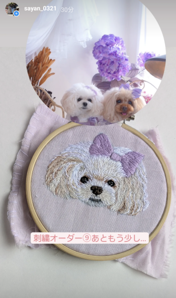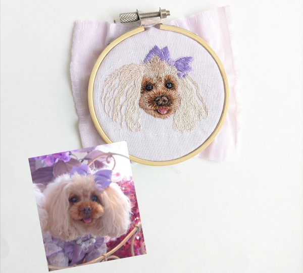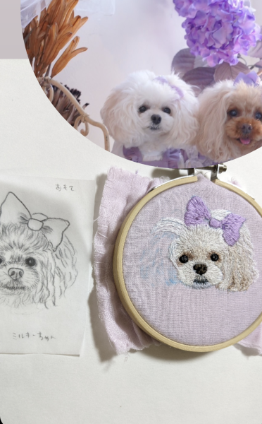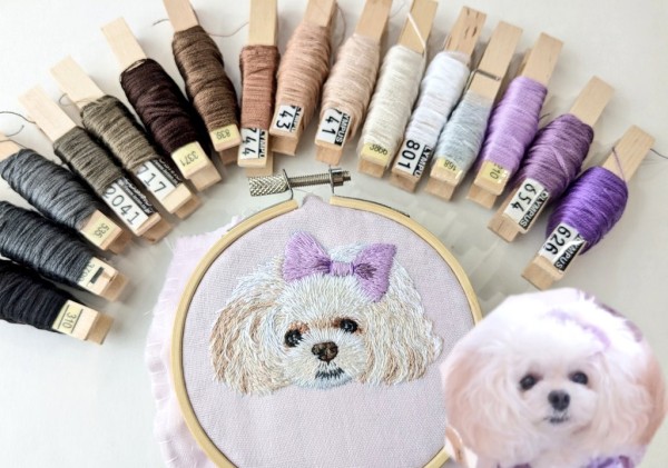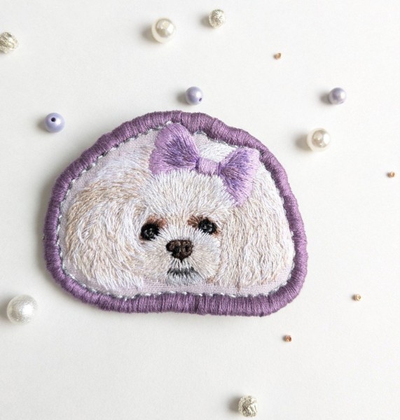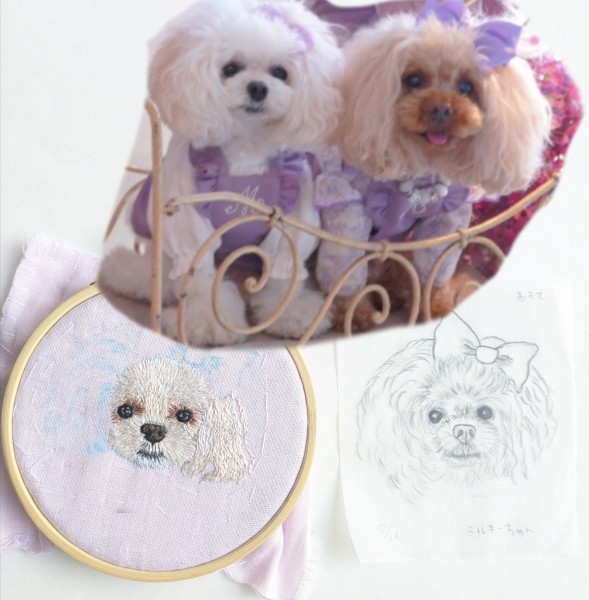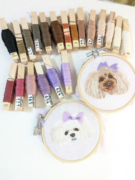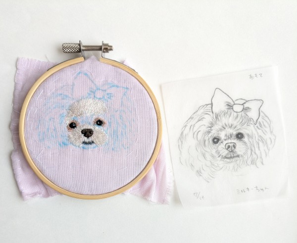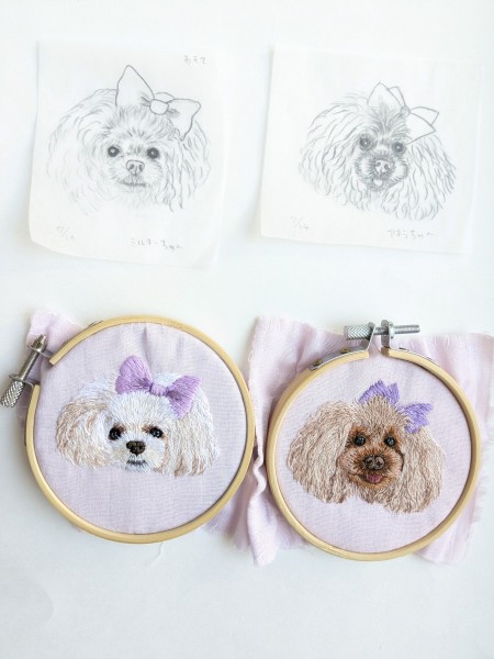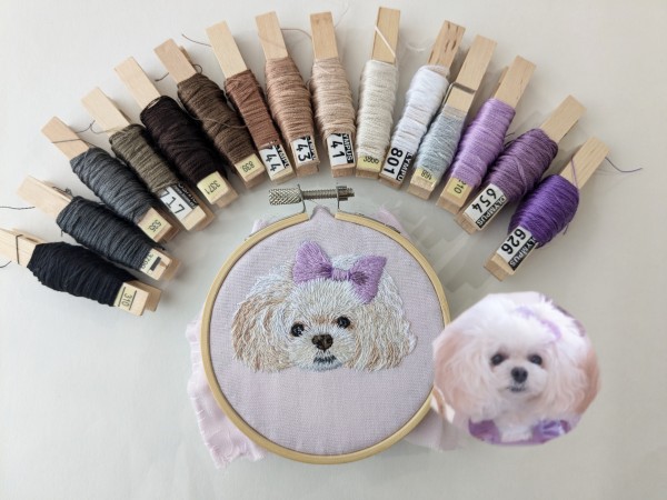 白い毛並みは、影の部分を茶色で刺繍すると茶色の毛に見えてしまい、違和感が残ります。白い毛の表現がとても難しいです