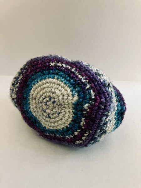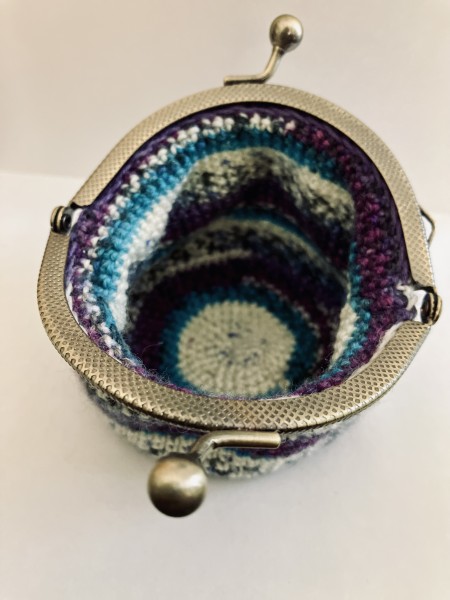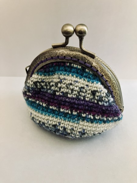がま口財布を編む時に細編みで特徴がでるオパール毛糸を使いました。
