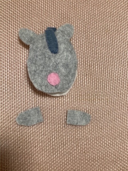 耳と足は2枚のフェルトの間に挟み込んでいます。