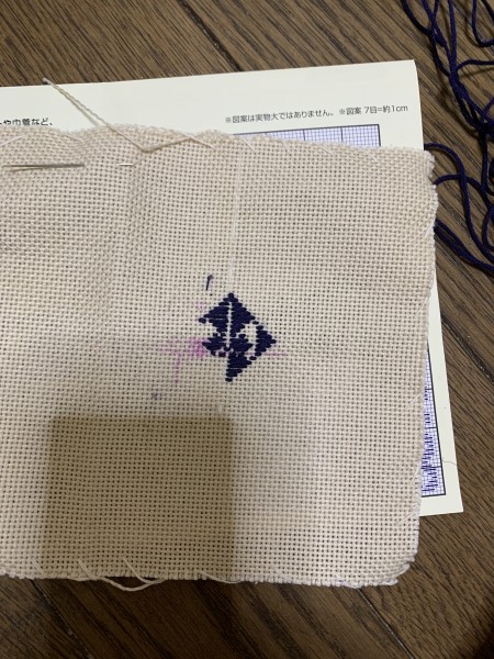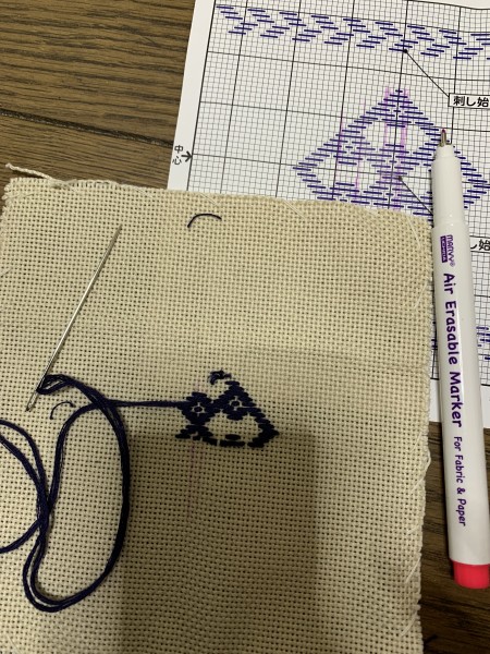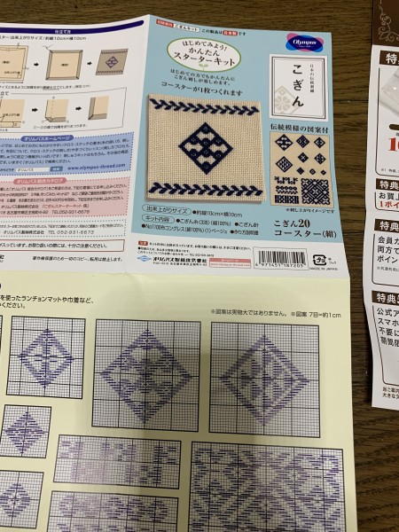 今日キットを購入して、またこぎん刺しをチャレンジしてます。なんとかここまで刺せました!