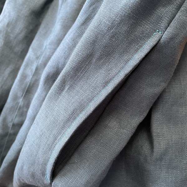 ターコイズブルーのリネンで作りました。ややハリがあるので、思ったよりフワッと感があります。