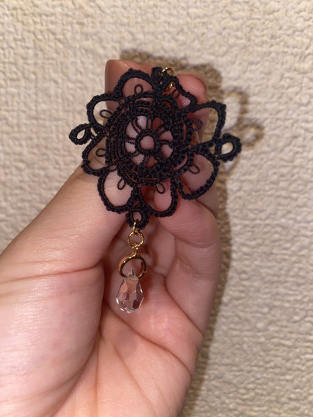 レース糸60番で作ったミニドイリーのピアス。チェコビーズ使用。