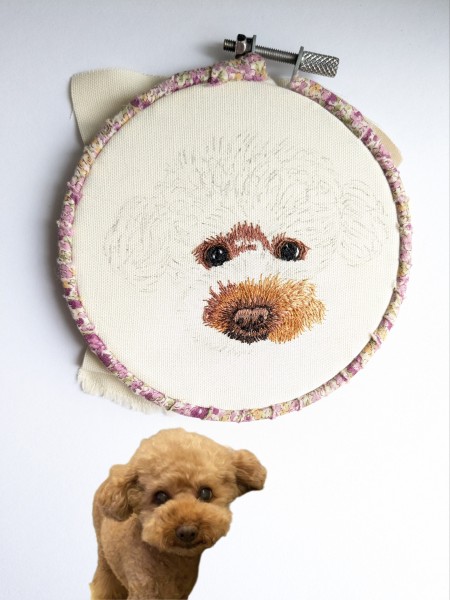 | てといとネームを(さやか)から屋号に変更しました。改めて宜しくお願い致します。 トイプードル刺繍オーダーブローチ 中サイズ 裏のブローチ処理は、以前てといと友達の 苺ichieさんにおすすめしてもらった透明糸を使ってブランケットステッチをしたので、糸が目立たず自然な仕上がりになった気がします! |