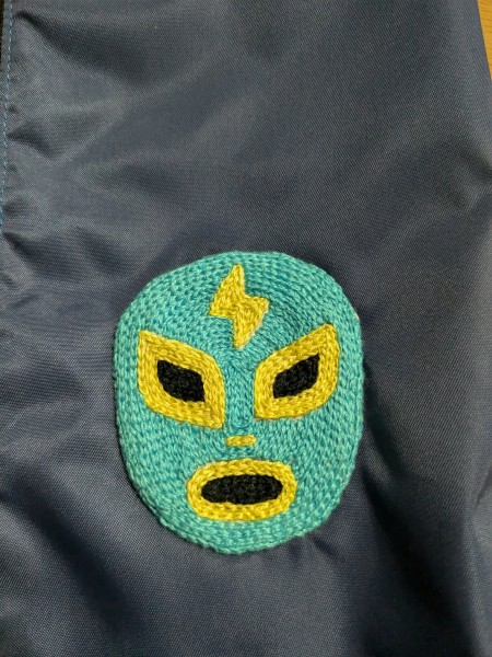 だったので水色のマスクをチェーンステッチでつくり、付け替えました。