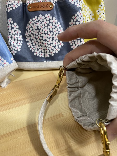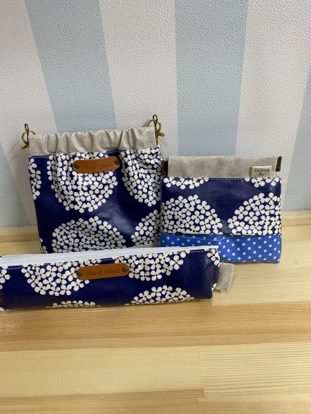 サニタリーポーチにエイドポーチ、ラミネート生地なので汚れも目立ちにくく、また持ち手は取り外ししやすいのでインポーチとしても使いやすいです。