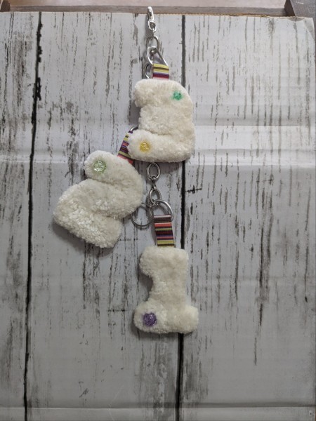以前作ったキルトのパンチングニードル部分で使わなかった物をそのままにするのは悲しいので、キーホルダー?にしてみました。