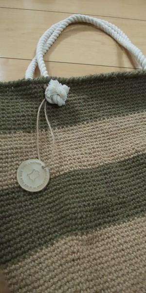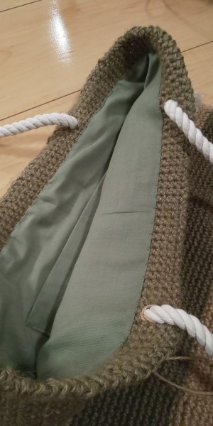 落ちついた配色のボーダーで、同系色のポケット付内布をつけました。
