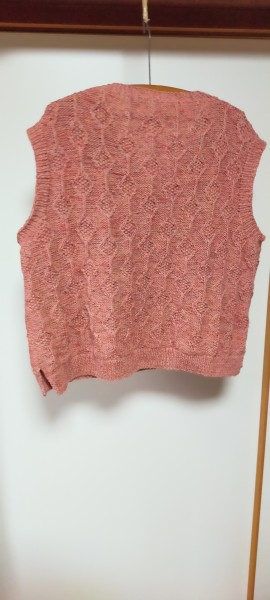 前回柄なしで同じ型のベストを作ったのですが、今回は本に載っている通りの総柄に挑戦してみました。