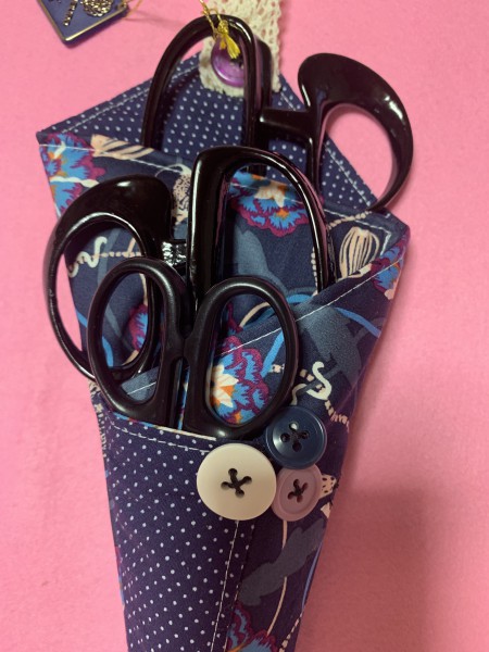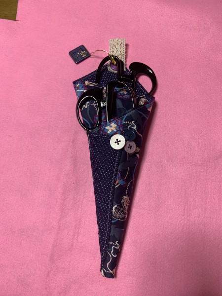 長方形の布2枚とキルト芯で作成。昨日1度作成しましたが角度と先の方が気に入らず、作り直すことに….厚みがあるので端をステッチで押え、先の部分は折り曲げてどうにか完成!