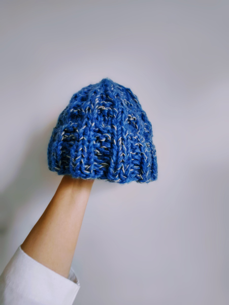 寝癖直し用にふわりとかぶれるよう、大きめに編みました