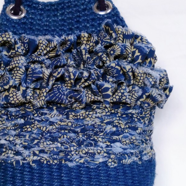 | 【輪織りバッグコンクール:エントリーNo.006】 母からもらった着物はサイズが合わず私には着れませんでした。このまま捨ててしまうのはもったいないと思い、私も母も使えるような輪織りバッグに仕上げました。 ポイントは着物の色に合わせて染めた麻紐と着物の柄が見えるようフリルを付けたところです。また、持ち手は結ぶ位置で長さの調整が出来、結び方で雰囲気が変わるようにしました。2人で使うことを考え、いろいろな持ち方が出来るように工夫しました。 出番が無くなっていた着物をこれからは2人で長く大切に使いたいと思っています。 輪織りバッグコンクールへエントリー中です。投票よろしくお願いします。 |