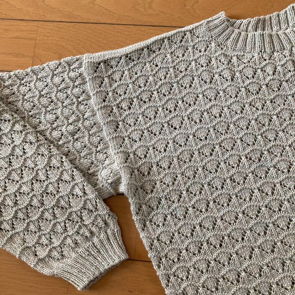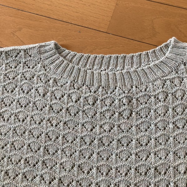 糸が細いので、なかなか仕上がらず、途中放置となりましたが、出来上がって良かったです。襟ぐりが広くなりすぎないよう気をつけました。