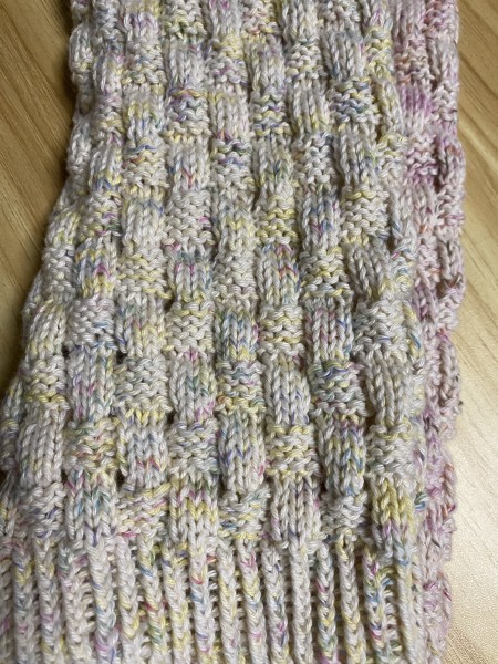 引き揃えた糸が途中でなくなっちゃったので、同じくらいの太さの少しふわっとした糸に繋いだので、間近で見ると分かってしまいます
