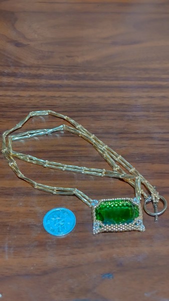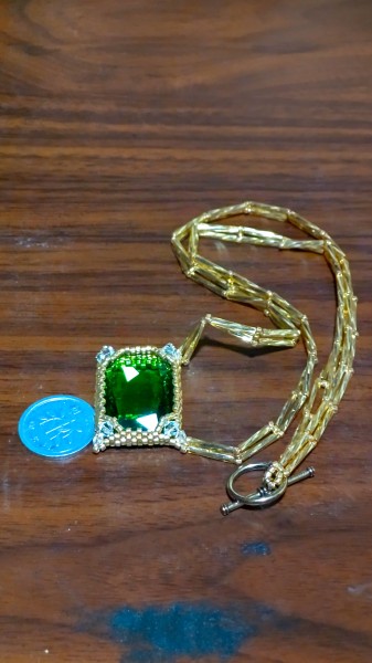 | 大きな貴和クリスタルをデリカビーズで包んで、 ネックレスを編みました。 |