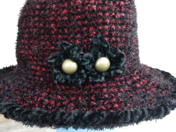 | 赤と黒のファンシーモールヤーンをいただきました。 そのまま編むとフワフワな風合いですが、編み目が全然わかりません!! そこで、極細モヘアと中細毛糸を混ぜて、細編みで暖かみを出して、エレガントなハット型帽子を編んでみました♪ 縁編みは黒のモールヤーンでバック細編みをして、カチッとした仕上がりになってます! お花のモチーフを付けて、より可愛く仕上げてみました♪ 12月にある、ニット即売会に出品します! |