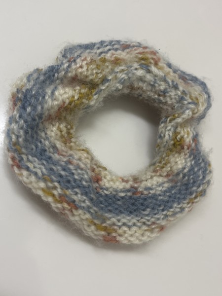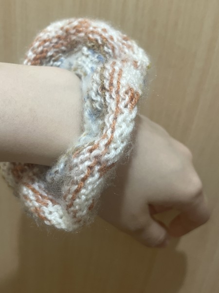 ニュアンスモヘアとポストカード2本取りのシュシュ
