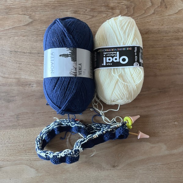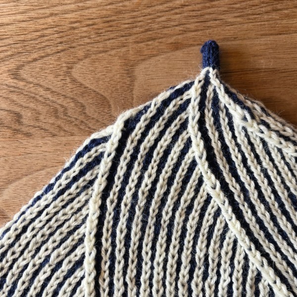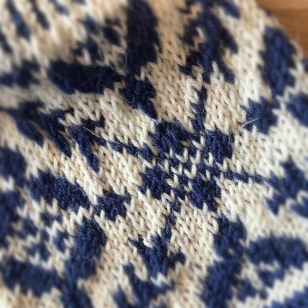 東京ヤーンクロール2024年のコラボパターン、渡辺晋哉さんデザインの編み込み模様の帽子『呉須絵の皿』を編みました。