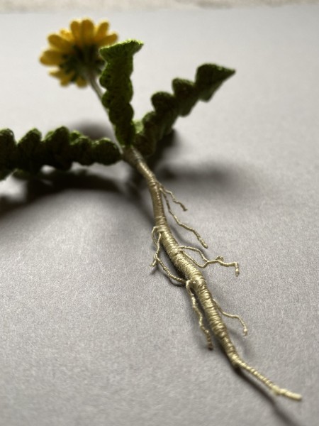 根っこつきのたんぽぽを立体刺繍で表現しました。