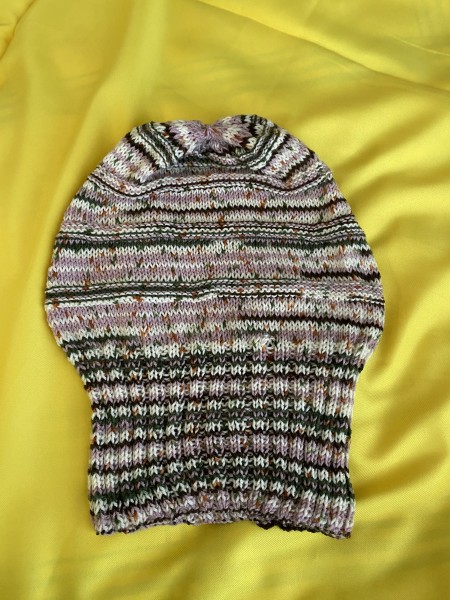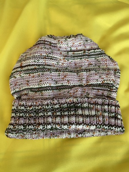 ショートスパンの段染め糸だったので、柄を活かしてシンプル可愛い帽子を目指しました。