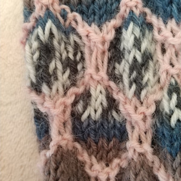 ウツボかくしの本体部分の段数を2倍にしたレッグウォーマーを編んでみた。
