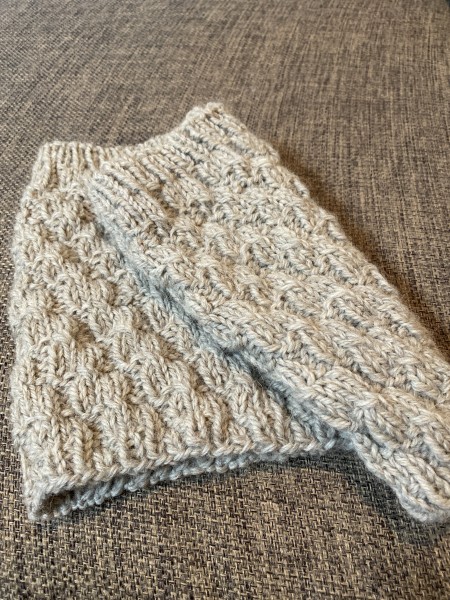 輪針の本の表紙にあるネックウォーマーを作りました。初めての輪針。とりあえず100均で買いました。2段目を編んだらねじれてて、やり直し済み。編み図通りに編んだつもりですがちょっと違ったみたい…次はセーターにチャレンジしたい!