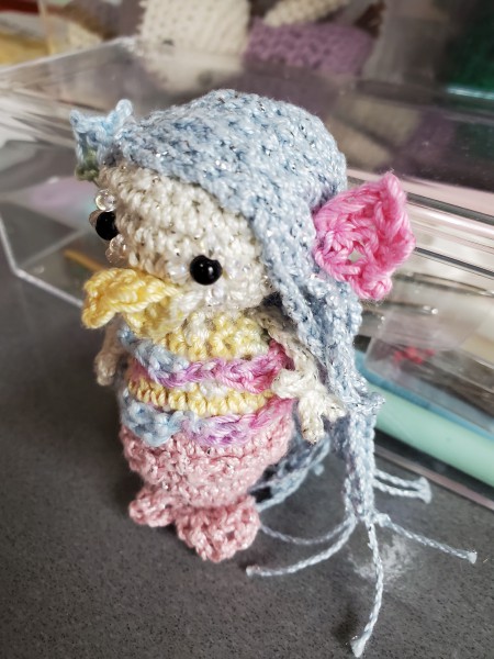 本やネットで探した編み図を参考に作っています。主にかぎ針での編み物メイン。キャラクターをモチーフに色合わせをすることもあります。中学生の頃に祖母から教わり、コロナ禍をきっかけに独学でメキメキと腕を上げまくってる最中です。