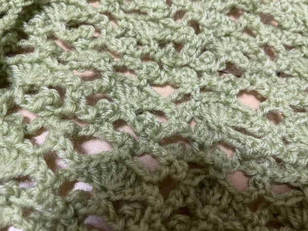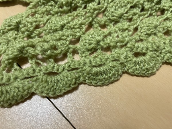 前回のショールの色違いで編んで見ました。鍵棒のサイズも少し大きくしてみました。