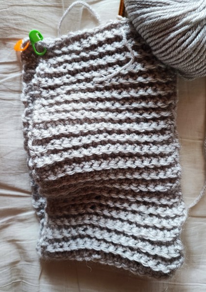 | 帽子。 自分用にかぎ針編みでニット帽を編みました。 帽子を編みたかったので、数冊本も探したりして、アラン模様をやってみたくなりました。 YouTubeリリナナさんのアラン模様のニット帽の編み方を参考にしています。 |