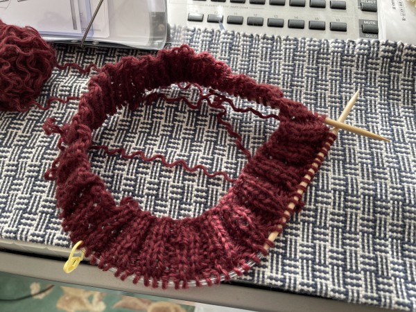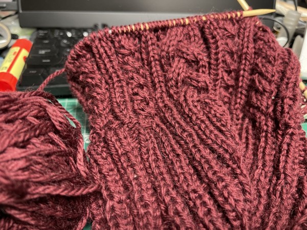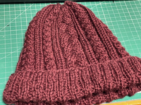 寒い日に出かけようとして、帽子を探したら見当たらない… ということで、「無いものは作れば良い」発動、編み始めました。