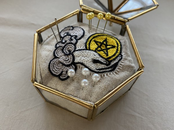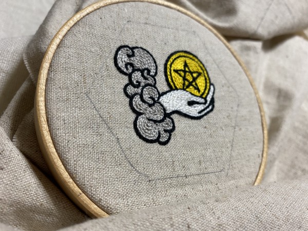 すごくいい! 刺繍の黒い縁取りがイラストを生き生きとしたものにみせていますね!丁寧な針の動きがわかります〜!