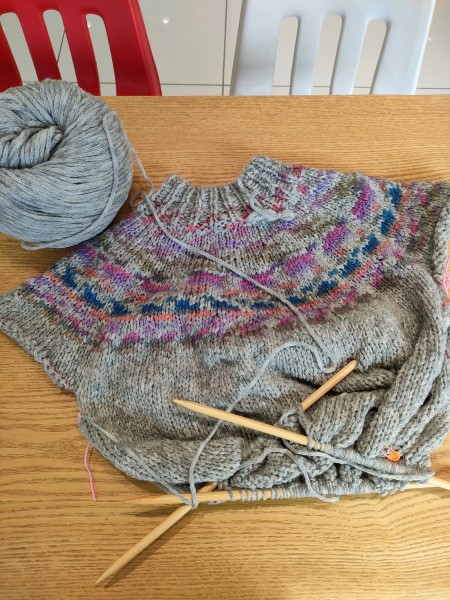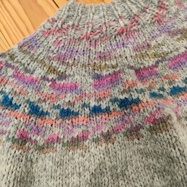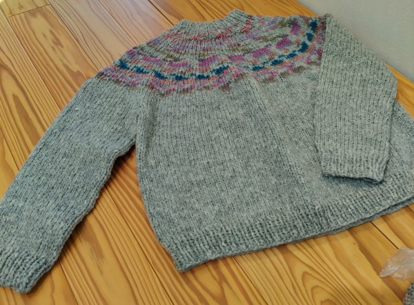 ありがとうございます。頼まれて編んだものなので、試着程度しか着てませんが、身頃の前後差がないので、前後差をつけるともっと着心地が良いだろうなと感じました。