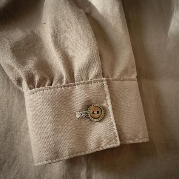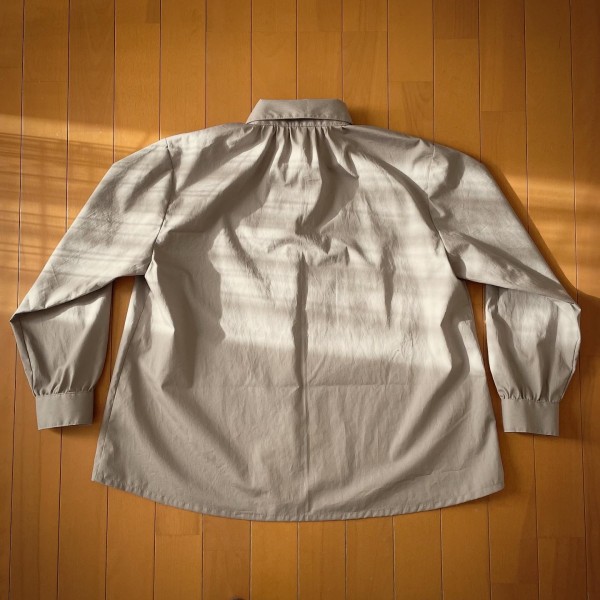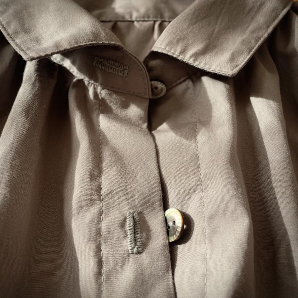 襟のところにギャザーがあって、ふわっとした形。台襟とありが一体型でした。