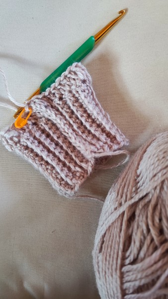 自分の手に合わせながらゆったりサイズで試しに編んでみました。