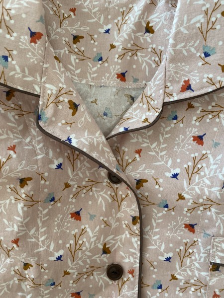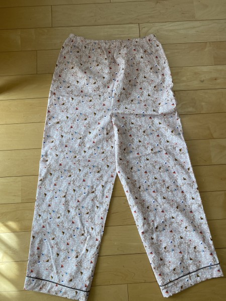 香田あおいさんのパジャマ大全の型紙を使って、パジャマ作りました。125センチ幅の布地の種類があまりなくて、柄が選べず…布地だけで高くついてしまった…今回は綿生地使用。