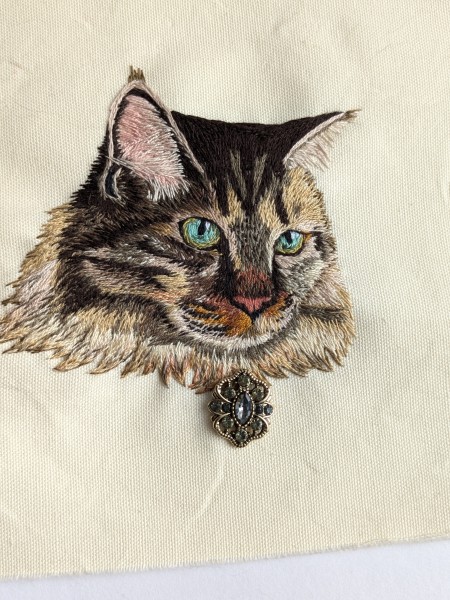 真ん中にネコ様で、グルーりと囲ってブローチの額縁風とかもどうかな?