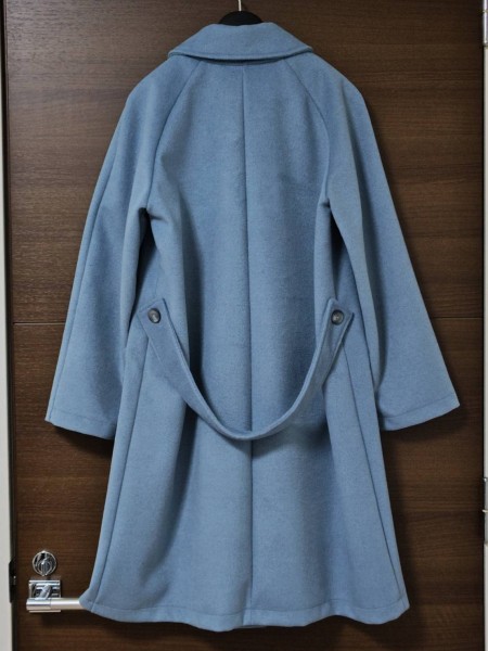 | ソーイングスクールのカリキュラムで、ラグランコートを縫いました。(ロックミシンと直線ミシンを使用) 丸襟や丸ポケット、ボタンホールが少し難しかったですが、デザインが可愛らしく、飾りベルトも素敵なので、完成して嬉しかったです。 |