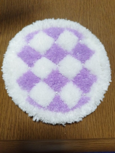 | 主な材料 | ハマナカ ピッコロの白と紫 |