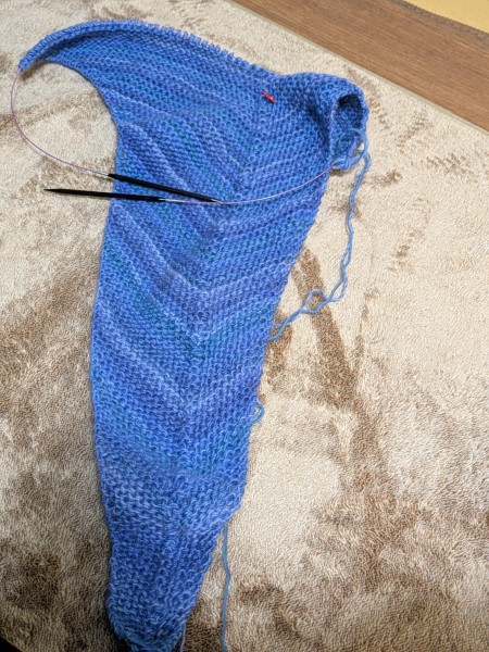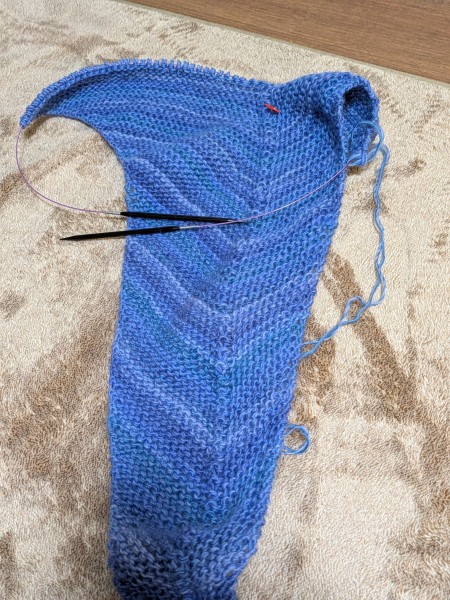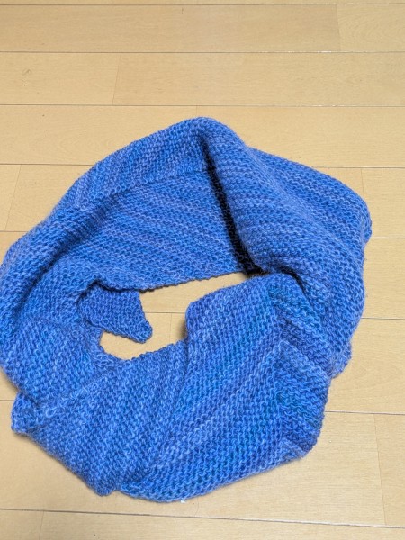 YouTubeで変わったデザインのショールの編み方動画を見つけたので、編んでみました。