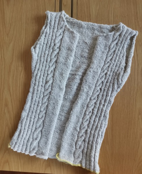 サイズ確認のため、一旦伏せ止めをしましたので、サイズ確認後に一目ゴム編み止めをしたいと思います。