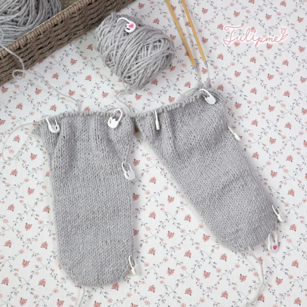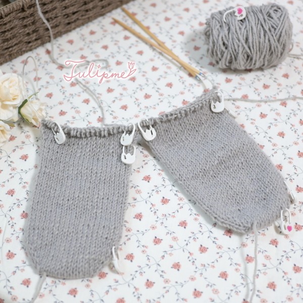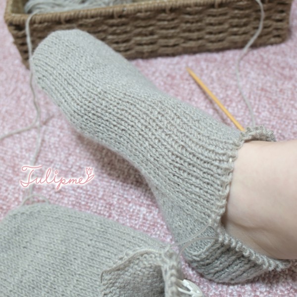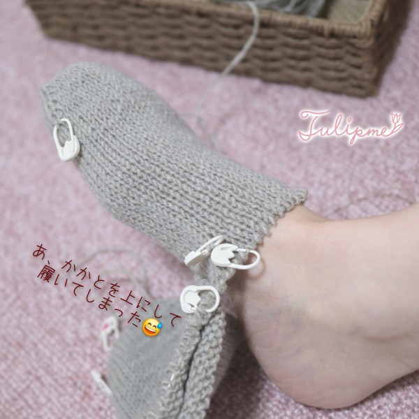 両足を一緒に編む方法で編んでいます♪