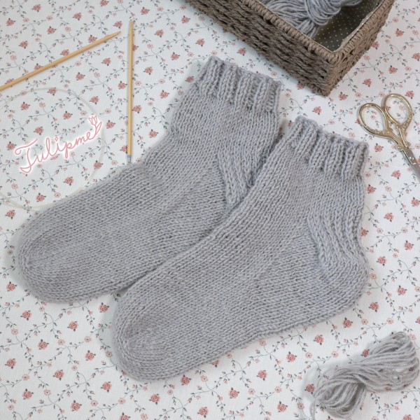 | YouTubeのあみもの予備校さんの動画を参考にしながら、初めての靴下に挑戦! | |