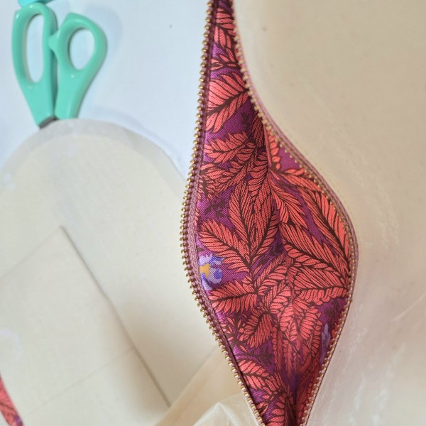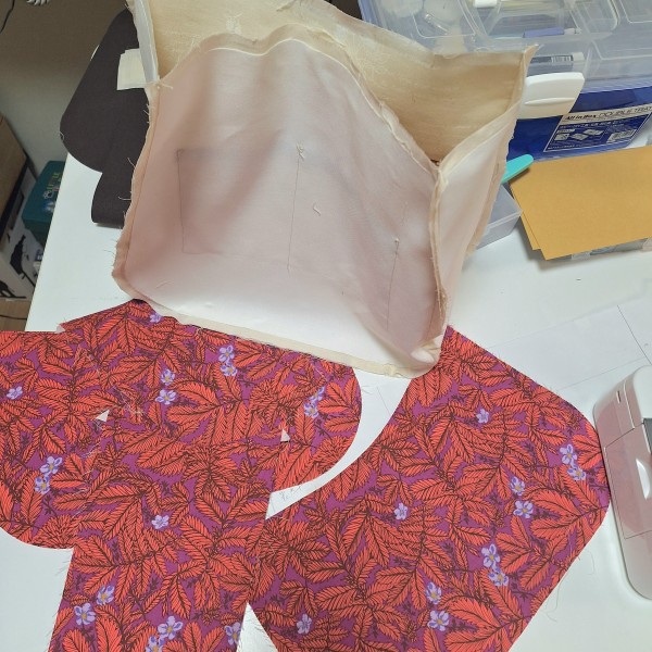 内布に使うコットンがペラッペラだったので、少し厚めの接着芯を貼ったら自立してしまった(笑)