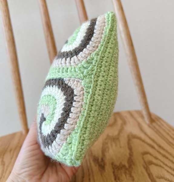 スパイラルグラニースクエアのミニクッションです。