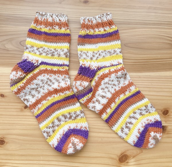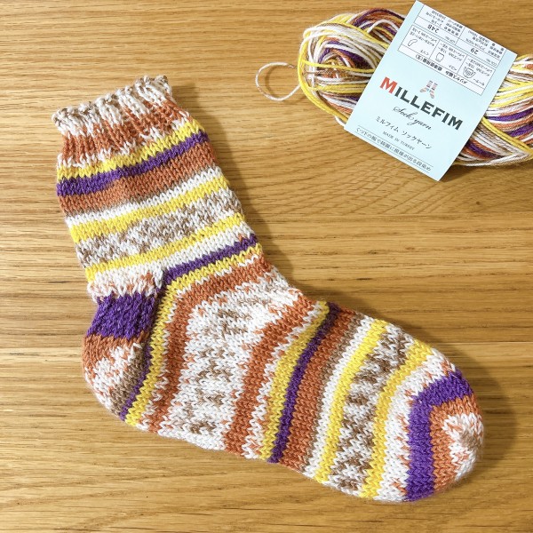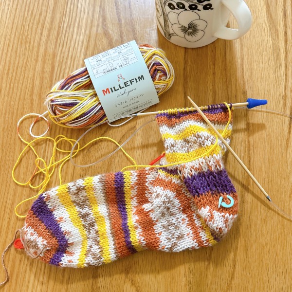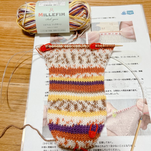初めての靴下編み。あみよびコケシ先生のレシピです。棒針編みに苦手意識がありましたが、すごく分かりやすい丁寧な動画でなんとか編み上げることができました!